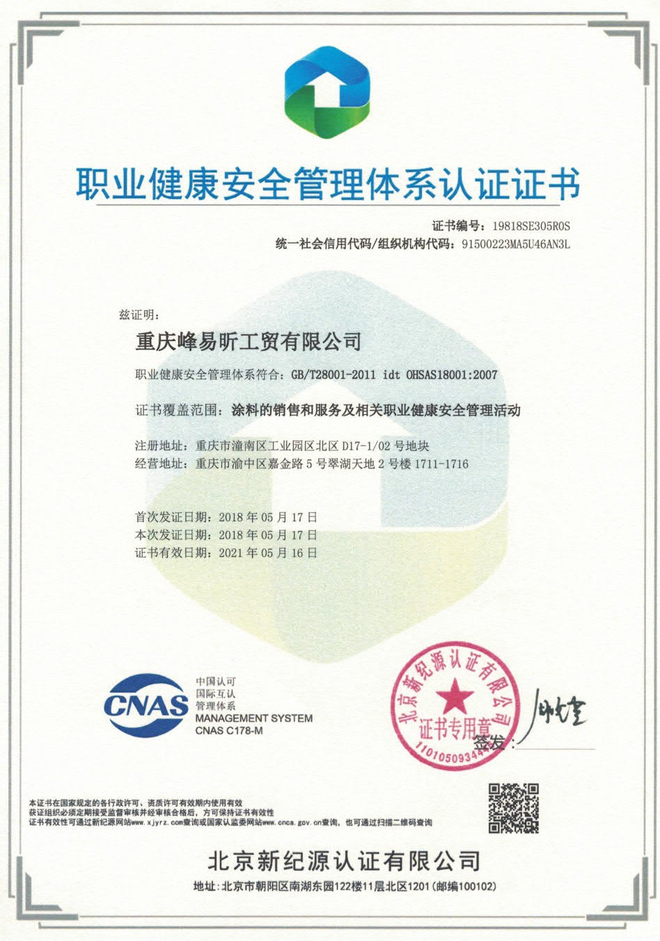 • 熱烈祝賀重慶峰易昕工貿有限公司